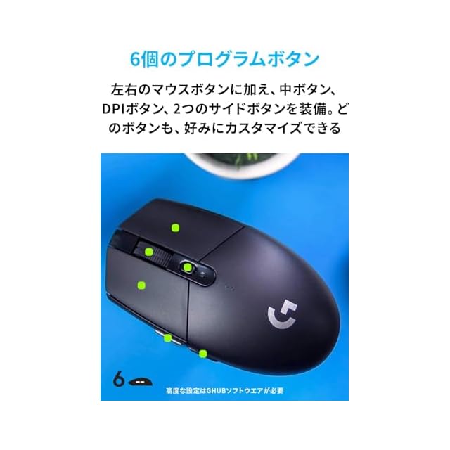 【Logicool G G304 ワイヤレスゲーミングマウス】G304はワイヤレス入門モデルでありながら、LIGHTSPEED技術の1msワイヤレス、独自開発のHEROセンサー、プログラム可能な6個ボタンを装備する、99gまで軽量した持ち運び便利な小型デザインで初心者からプロまでに愛用される。