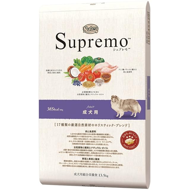 商品名:Nutro シュプレモ 全犬種用 成犬用 13.5kg ドライフード 総合栄養食 ドッグフード 犬 大容量 厳選自然素材 香料・着色料 無添加 ニュートロ