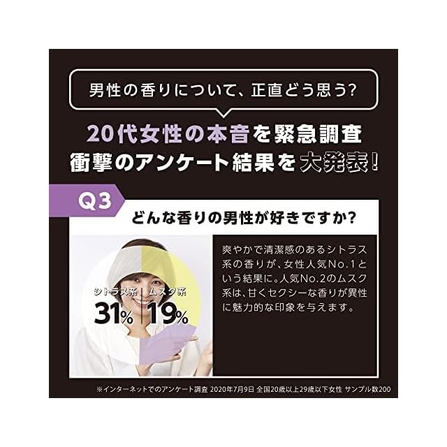 【香り】女性に人気のシトラス(柑橘系)から、ムーディームスクへの変化をお楽しみいただけます。爽やかさの中にもほんのり甘さがあり、心地の良い魅惑的な香りが漂います。