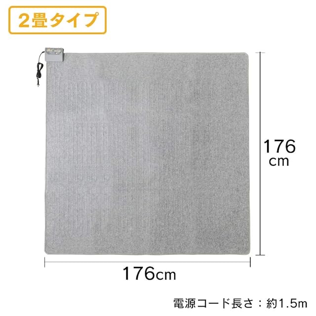 商品名:アイリスオーヤマ ホットカーペット 2畳 本体 176×176cm 正方形 6段階温度調節 自動電源オフ6h 室温センサー付 電気カーペット 電気マット ホットマット ダニ退治 こたつ併用可 三畳 足元 暖房 省エネ HCM-T1818-H グレー