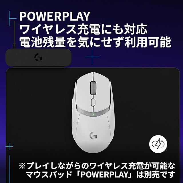 自社史上最長連続時間の軽量ワイヤレスゲーミングマウス/単三乾電池1個で300時間以上の連続使用が可能/プレイしながらのワイヤレス充電が可能な「POWERPLAYワイヤレス充電システム」にも対応、電池残量を気にせず利用できます ※POWERPLAY(G-PMP-001)は別売です
