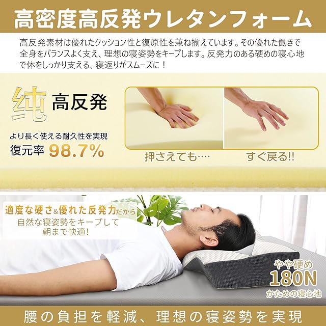 【お手入れ方法について】側生地が汚れた場合は、上から薄めた中性洗剤を浸した布等で叩くように汚れをとってください。 ※カバーが付属しており、洗濯できます。寝具を大きく変えた場合は、寝れない寝具のため体の初期反応として、場合により「体が痛い・寝心地が悪い・腰が痛る」などが発生する場合がございます。その場合、数日連続的にお使ってみればだんだん慣れていきます。アフターサービスのことはご心配しないでください。