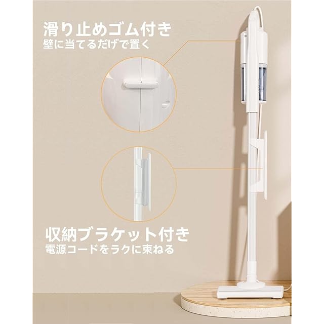 ✨【5mコード式掃除機】コード式だから、長時間使っても吸引力が落ちません。5mの電源コードで、メイン掃除機として部屋の隅々までのお掃除は十分です。充電不要なので気が向いたときにいつでも使用でき、時間の制限はありません。余ったコードは巻き取り収納が可能。滑り止めゴム付きまして、不使用とき、壁に立てかけることができます。※ご注意:毛足の長い絨毯や濡れたフローリングには対応できません。予めご了承下さい。