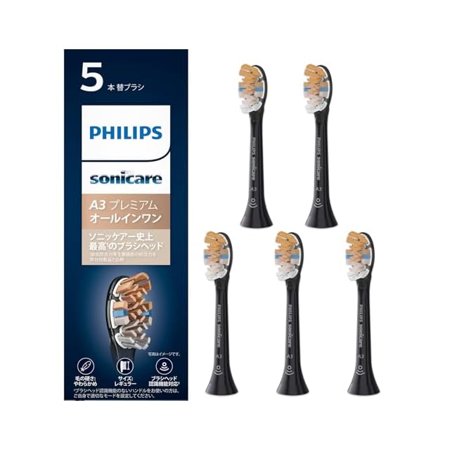 フィリップス 替えブラシ ソニッケアー プレミアムオールインワンブラシヘッド・レギュラー (5本) 正規品 A3 HX9095/96 ブラック