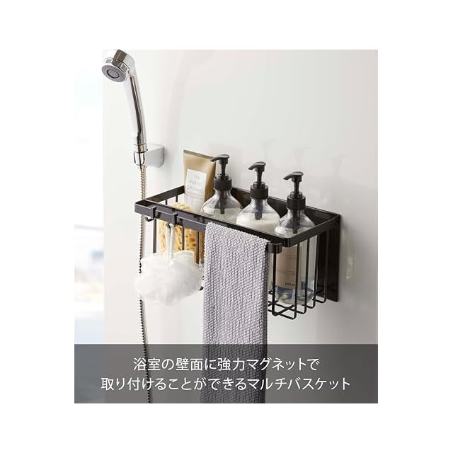 浴室の壁面に強力マグネットで取り付けることができる便利なマルチバスケット。