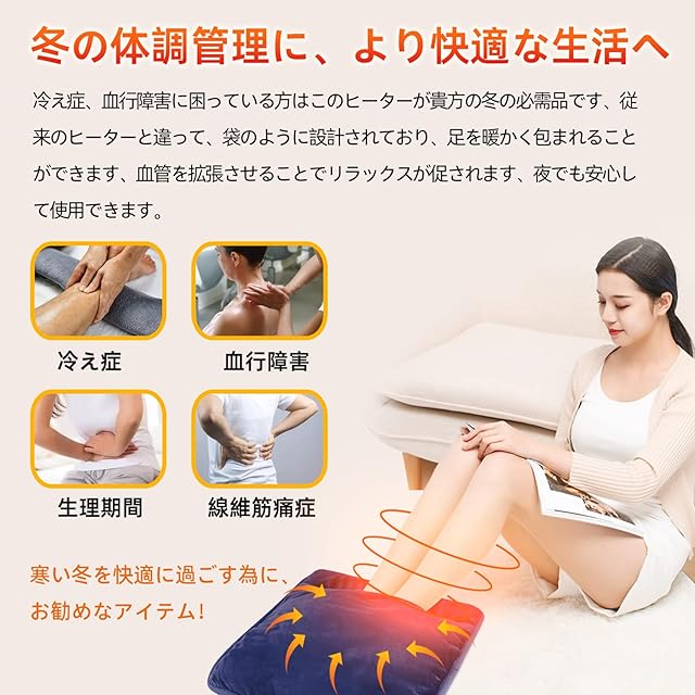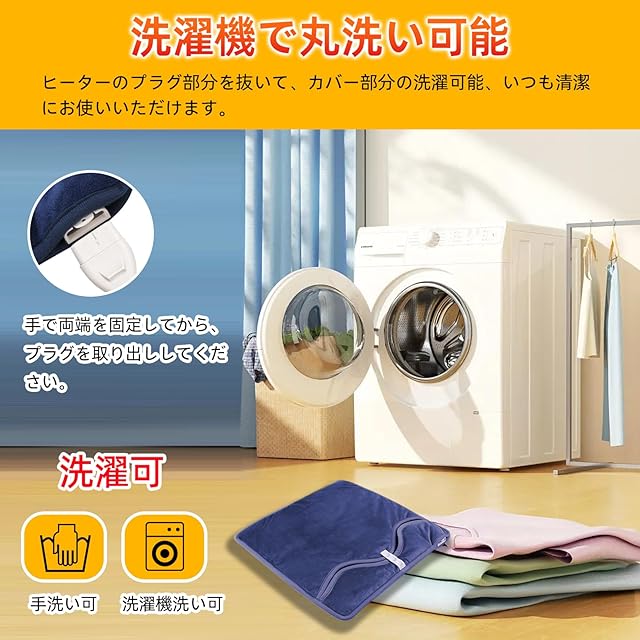 【お肌に優しい生地・優れた保温性・洗濯可能】この電気足温器は暖かくて、超柔らかな肌触りが魅力の「マイクロプラッシュ(Microplush)」を採用します。「マイクロプラッシュ(Microplush)」は、柔らかいビロードのような繊維が特徴です、 繊維の中に空気を含んで熱を逃さないので、フリースよりも保温性に優れています。手洗いだけでなく、洗濯機で丸洗いできます。洗える前に、ヒーターのプラグ部分を抜いて、カバー部分の洗濯可能です。(コントローラーをや電源コードの洗浄はできません。)