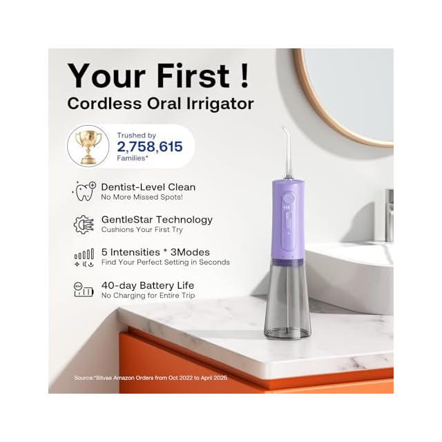 3つのモードと5段階の強さ設定が可能なBitvae口腔洗浄器は、大容量の取り外し可能な水タンクが付属しており、USB充電式でIPX7防水なので、使いやすくお手入れも簡単です。