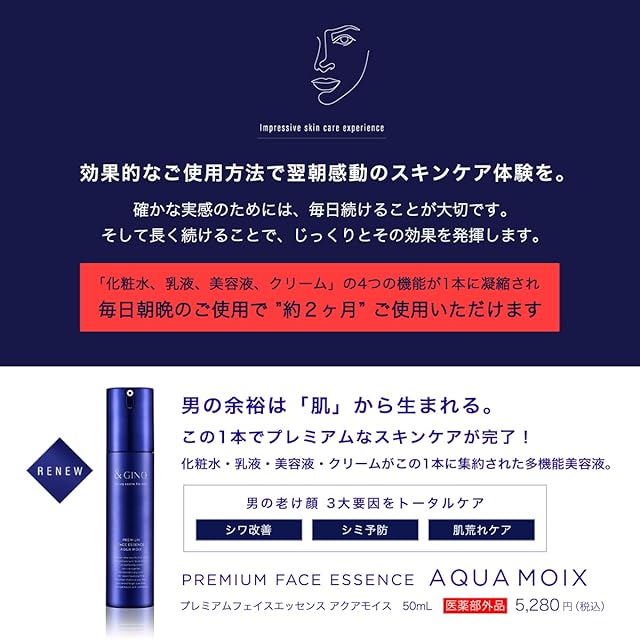 商品名:&GINO(アンドジーノ) プレミアムフェイスエッセンス アクアモイス 50ml 美容液 メンズ