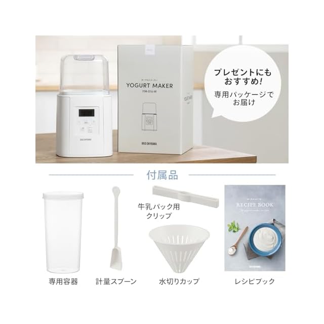 商品名:\メディアで紹介されました!/アイリスオーヤマ ヨーグルトメーカー 豆乳パック対応 甘酒メーカー 飲むヨーグルト 低温調理 自動メニュー レシピ付き IYM-016-W ホワイト