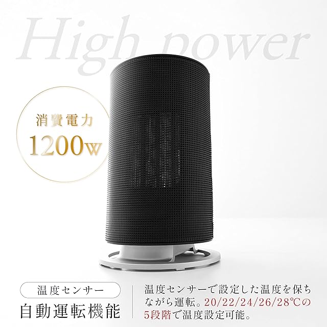 【商品仕様】▪本体サイズ:幅18×奥行16×高さ29.1cm ▪本体重量:1.7kg ▪電源コードの長さ:1.8m ▪電源:交流100V(50/60Hz) ▪定格消費電力:1200W(強運転)/900W(中運転)/500W(弱運転) ▪安全装置:転倒オフスイッチ、サーモスタット、温度ヒューズ ▪期間:お買い上げ日より1年間(の範囲については、書をご確認ください。(一般家庭用以外(業務用など)に使用された場合の故障及び損傷などは対象外となります))