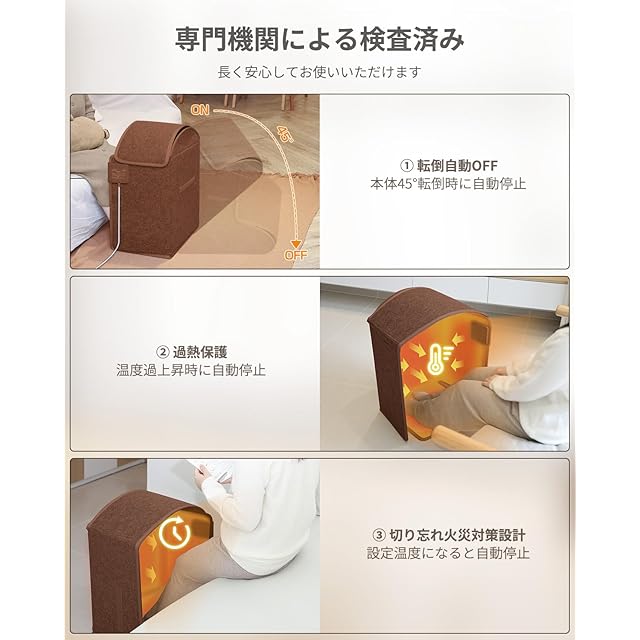 【あらゆる事故を防ぐ安全設計】YUSIDO パネルヒーターがあることで、より快適に、より愉しく、“安全”に。①45°転倒時には自動的に電源オフ、ペットやお子様が押し倒してしまったり、地震が起きたなど場合にも安心です。②設定温度になると自動で切れるオートオフタイマー内蔵のため、切り忘れても安心なだけでなく消費電力も抑えられて省エネ。③高い暖房能力と安全性を両立。やけどしにくい表面温度だから安心してお使いいただけます。④ヒーター内の温度はAIコントロール技術を導入する。異常に加熱したことを感知すると自動で電源を切ることもできる。⑤PSE取得済み。安全性を第一の目指として、日本向けに特別に設計されています。