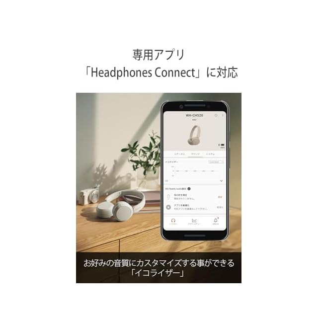 専用アプリ「Headphones Connect」に対応しており、お好みの音質にカスタマイズする事ができる「イコライザー」を使うことで「Relaxed」や「Bass Boost」など8種類のプリセットから選択したり、お好みのイコライザー設定にカスタマイズしたりすることが可能です。