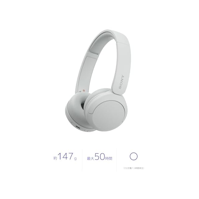 ソニー(SONY) ワイヤレスヘッドホン WH-CH520:Bluetooth対応/軽量設計 約147g/専用アプリ対応により好みの音質にカスタマイズできる「イコライザー」設定対応/ホワイト WH-CH520 W 小