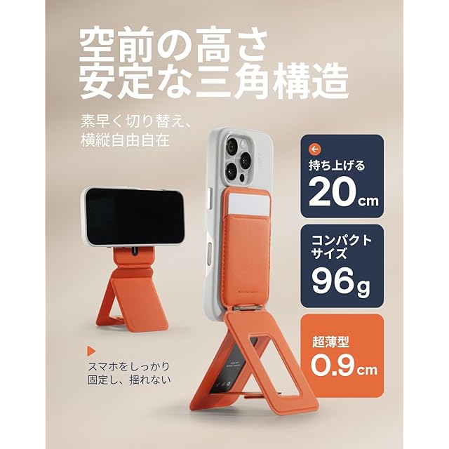 商品名:MOFT【公式直営店】モフト スマホスタンド 8-in-1多機能スタンド カードケース付き MagSafe対応/NFC/Suica/タッチ決済対応|iPhoneシリーズ・全機種対応|強力磁力&アイアンリング付き|MOVAS™素材|薄型・軽量・折りたたみ式|多角度調整・三脚 携帯スタンド|自撮り・動画視聴・ウェブ会議・ドラマ鑑賞・記録撮影・旅行に最適(カード収納)