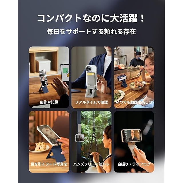 商品名:MOFT【公式直営店】モフト スマホスタンド 8-in-1多機能スタンド カードケース付き MagSafe対応/NFC/Suica/タッチ決済対応|iPhoneシリーズ・全機種対応|強力磁力&アイアンリング付き|MOVAS™素材|薄型・軽量・折りたたみ式|多角度調整・三脚 携帯スタンド|自撮り・動画視聴・ウェブ会議・ドラマ鑑賞・記録撮影・旅行に最適(カード収納)