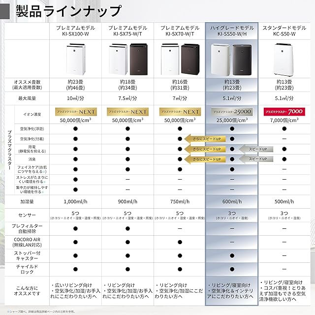 商品名:シャープ 加湿 空気清浄機 KI-SS50-H プラズマクラスター 25000 浮遊・付着ウィルス 花粉 空気浄化 薄型スリム おすすめ畳数 13畳 加湿量 600mL/h