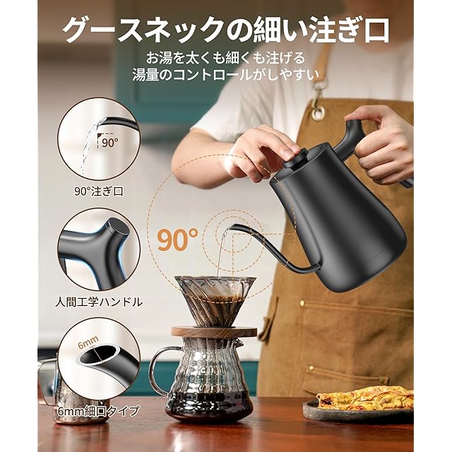 電気ケトル 温度調節 コーヒーケトル 細口 ドリップ 1200W 1℃単位温度設定/保温機能付き/ドリップタイマー機能/空焚き防止機能/自動電源オフ 0.8L 温調 電気 小型 PSE認証済み 日本語取扱説明書付き
