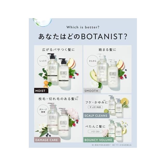 【セットで叶える、自然の力で満たされるさらさらヘアケア】 ボタニストのスムースシャンプー&トリートメント詰め替え用大容量セットで、毎日のヘアケアを自然の恵みで満たします。 ◆シャンプー 「髪を自然で満たしきる」 潤いのある、さらさらとした髪に洗い上げます。 爽やかで清楚なグリーンアップルとローズの香り 自然由来指数 84% 水を含む ISO16128準拠 [シリコンフリー パラベンフリー 合成着色料フリー サルフェート※1 フリー] ◆トリートメント 「髪を自然で満たしきる」 潤いのある、さらさらとした髪に仕上げます。 上品で甘美なアップルとベリーの香り 自然由来指数 90% 水を含む ISO16128準拠 [パラベンフリー 合成着色料フリー] <両製品共通の特長> ①全バリアントに新配合成分を含む共通成分「濃密ボタニカル美容液」 「濃密ボタニカル美容液」が叶える3つのケア ・地肌ケア … 2種のシラカバウォーター、グリチルリチン酸2K(保湿成分) ・保湿ケア … サトウキビ糖蜜、コメセラミド(ナノ化) ・ダメージケア … マカダミアナッツオイル(ナノ化)、ボタニカルマイクロプロテイン ②5種の仕上がりのラインナップごとに厳選した植物成分を配合 ホホバ種子油(保湿成分) ③環境に優しい 詰替パウチ ・環境に優しい再生プラスチック使用で石油由来原料を削減 ・本体容器よりも廃棄プラスチックを約87%削減できます Q. このセットはどんな髪質にオススメですか? A. 特にさらさらとした仕上がりを求める方に最適です。濃密ボタニカル美容液が髪を内側から潤し、地肌からダメージまでトリプルケアします。 Q. 香りの持続性はありますか? A. シャンプーはグリーンアップル&ローズ、トリートメントはアップル&ベリーの香りが上品に広がり、洗い上がり後も自然な香りが続きます。
