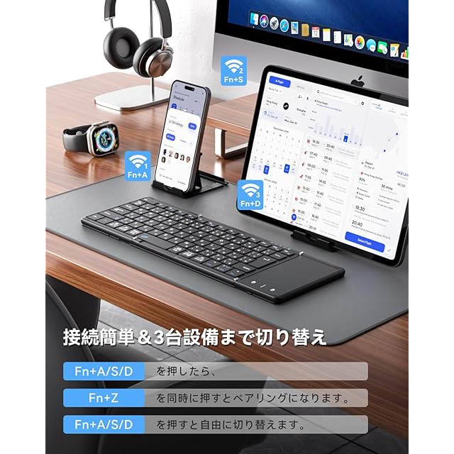 商品名:【最新型】Omikamo キーボード bluetooth 折り畳み式 ワイヤレス JIS標準日本語配列 ipad キーボード スマホ マルチペアリング タッチパッド付き iOS/Windows/Android/Mac/Google対応 無線 コンパクト 軽量 薄型 ipad mini パンタグラフ 充電式 (黒)