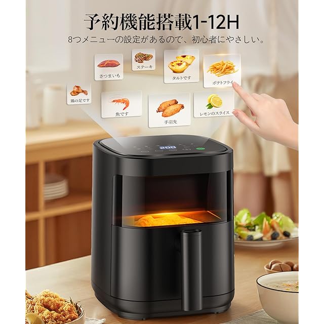 商品名:ノンフライヤー 3L 電気フライヤー ノンオイル 揚げ物 惣菜 1~2人用 可視窓 エアフライヤー LEDディスプレイ タッチパネル タイマー 温度調整 中断記憶 日本語説明書 日本語レシピ付き PSE認証済 黒色