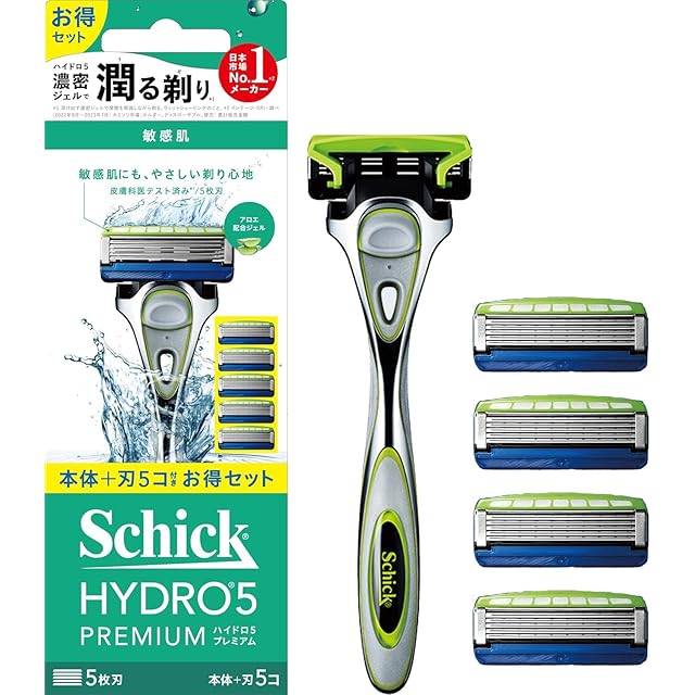 Schick(シック) ハイドロ5プレミアム 敏感肌 コンボパック(ホルダー(刃付き)+替刃4コ) 髭剃り カミソリ