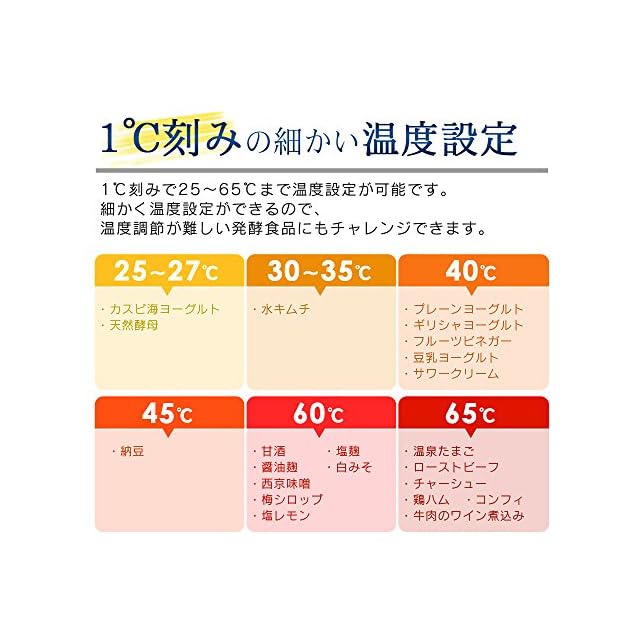 発酵食品は菌・温度・時間の設定で作ることができます(発酵食品例:塩麹・醤油麹・甘酒・納豆・天然酵母・その他)