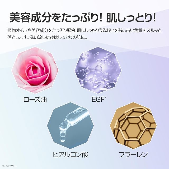 【美容液成分たっぷりで肌しっとり】 植物オイルや美容成分をたっぷり配合。肌にしっかり潤いを残し古い角質をするっと落とします。洗い流した後はしっとりの肌に。