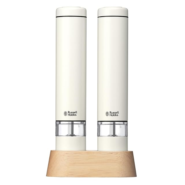 商品名:【公式】 Russell Hobbs ラッセルホブス 電動ミル ソルト&ペッパー ミニ ホワイト 2本セット 7933JP-WH 3ヶ月延長 黒胡椒 岩塩 片手操作 結婚祝い プレゼント ギフト キッチン家電 シンプル ナチュラル