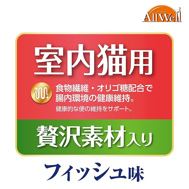 [吐き戻し軽減] All Well(オールウェル) キャットフード ドライ [室内猫用] 贅沢素材入り フィッシュ 9.6kg (2.4kg×4個)【国産/ケース品】