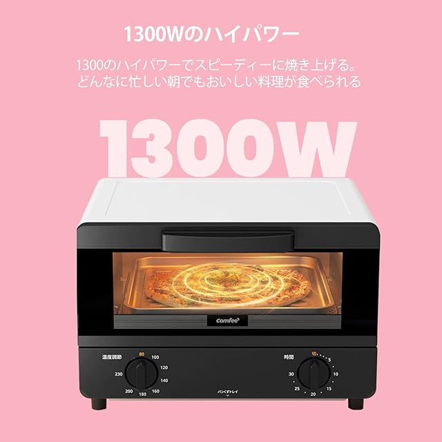 商品名:COMFEE' オーブントースター 4枚焼き 14L大容量 80℃~230℃無段階温度調節 30分タイマー付き 最大1300W出力 焼き網&受け皿付き スライド下開け・オープンドア設計 上下高火力ヒーター コンパクト設計 直感的なつまみ操作 一人暮らし お手入れ簡単 ホワイト CF-DC149-WB