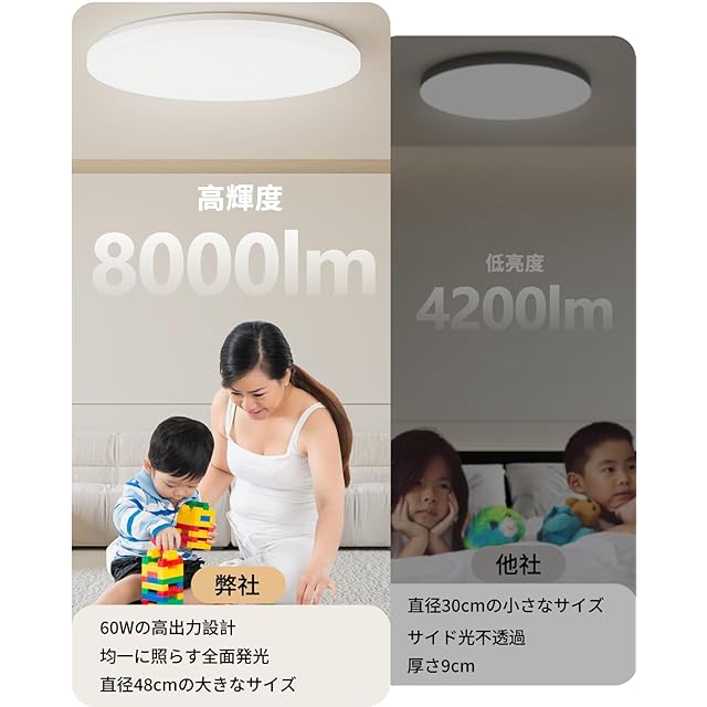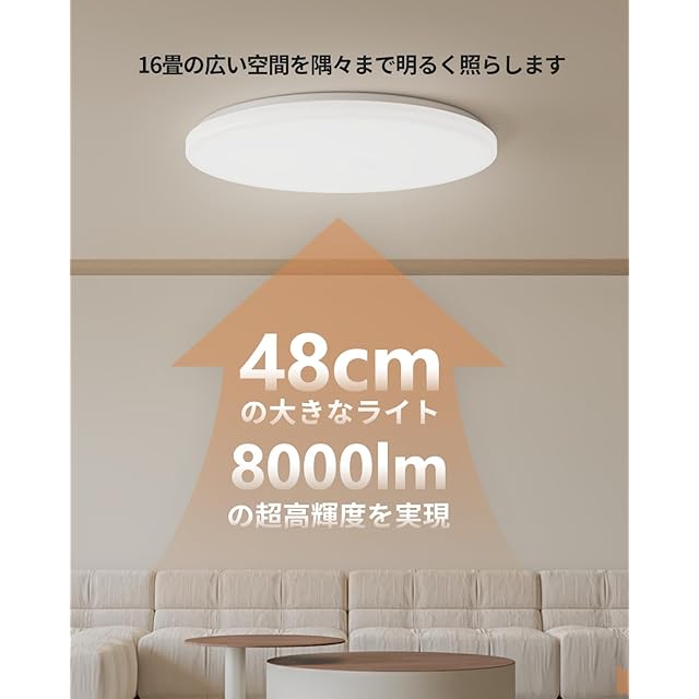 ⭐【高輝度】8000lmの強力な明るさで、お部屋全体を昼間のように照らします。読書や作業にも最適で、快適な空間を実現。広い空間でも十分な光量を確保します。