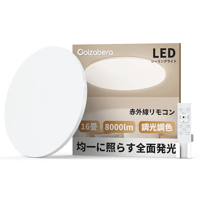 商品名:Coizabera Led シーリングライト 16畳~18畳 60W 高輝度 8000lm 薄型 調光調色 タイマー・メモリー機能 常夜灯 照明器具 Ledライト 16畳 取付け簡単 低い天井対応 器具一体型 リビング/寝室/書斎/台所/オフィスに適用 3年赤外線リモコン スマホ操作なし