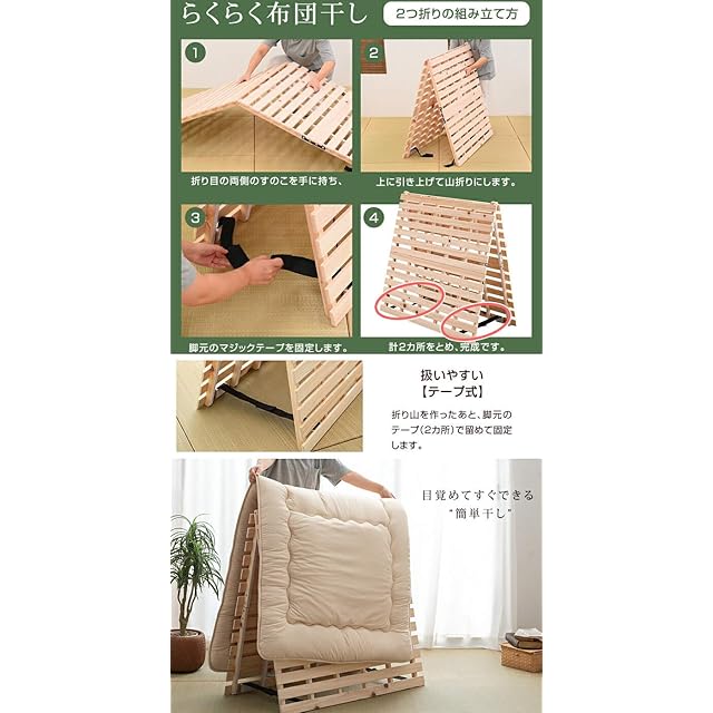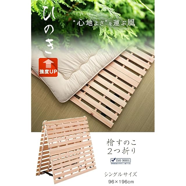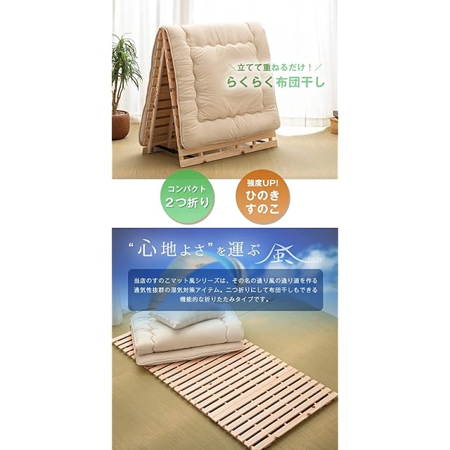 【スタッフおすすめポイント】<br> ・布団を湿気・結露から守るすのこマット<br> ・心地よい香りと高い耐久性を持つ天然檜を使用<br>・布団が干せる二つ折りタイプ<br> ・折りたたみ固定は簡単マジックテープ式<br> ・滑り止め付き <br>