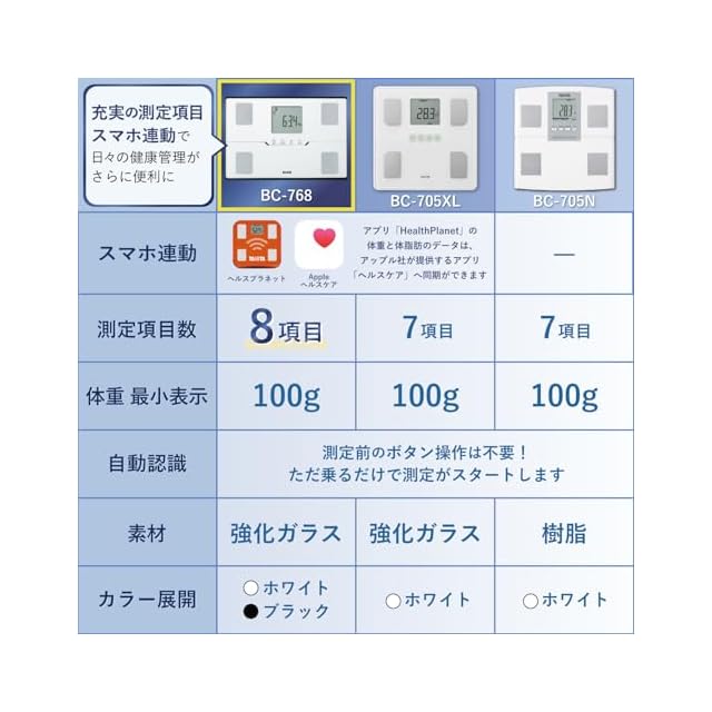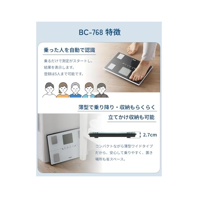 商品名:タニタ 体重計 体組成計 スマホ連動 ヘルスメーター BC-768 ブラック 【体脂肪率/内臓脂肪レベル/筋肉量/基礎代謝量/体内年齢/推定骨量/BMI/スマホ連動/乗るピタ】