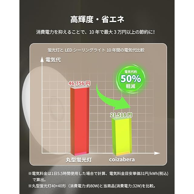 ⭐【商品の仕様】 本体サイズ:外径φ32cm × 高さ5cm 重さ:約0.8kg 定格消費電力:32W モジュール寿命:約40,000時間 さらに、シーリングライト本体には5年間のが付いており、長期間にわたり安心してご使用いただけます。