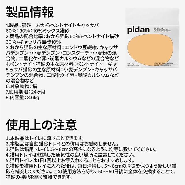商品名:pidan 猫砂 おから 固まる ベントナイトとおから 混ぜる 脱臭 抗菌 真空パック 飛び散らない 天然素材 臭みから解放 (3.6kg×4袋)
