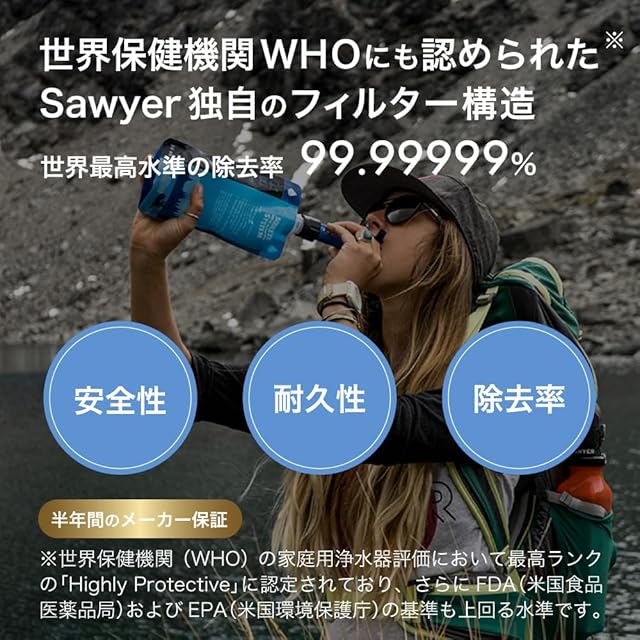 【世界保健機関WHOにも認められた独自のフィルター構造の携帯浄水器】厳しい国際基準を満たした安心の浄水力で、あなたの飲み水を安全に守ります。