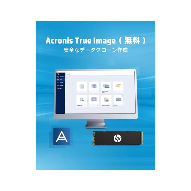 【Acronisソフトウェアを無料提供】Acronis系のソフトウェアは世界的に有名なバックアップソフトであり、それを通じて、誰でも簡単にパソコンのデータをバックアップすることができます。SSDを換装する時にOSやソフトなどの再インストールが必要なし。※HP SSDシリーズ商品のユーザーに無料で提供いたします。