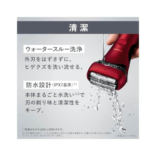 外刃をはずさずに、ヒゲクズを簡単に洗い流せる「ウォータースルー洗浄」搭載