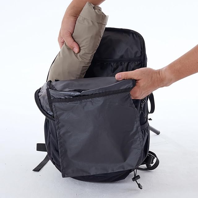・サイドコンプレッションストラップ ・上部に小物入れになるジップポケット ・2つのフロントジップポケット ・レインカバー ・サイドポケット ・ハンドレスト ・取り外し可能なウエストストラップ ・収納式チェストポケット