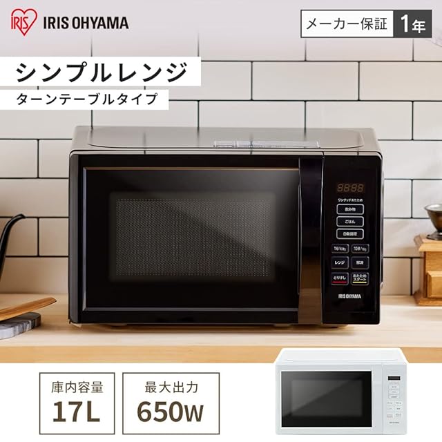 商品名:アイリスオーヤマ 電子レンジ 17L 単機能 ターンテーブル ヘルツフリー 全国対応 一人暮らし 新生活 PMB-T178-B ブラック