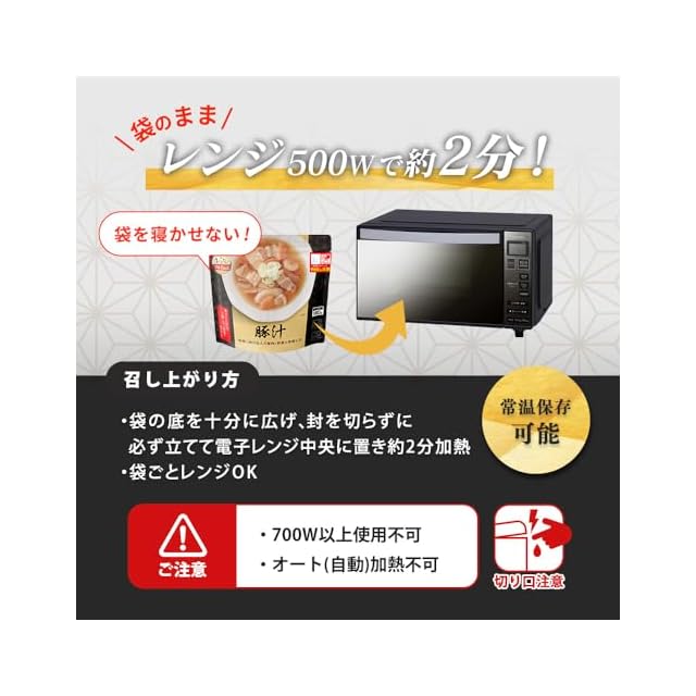 【レンジ de Pa Cook:豚汁180g】袋のままレンジ調理できる、レンジ de Pa Cook(レンジでパクック)の豚汁です。常温での保存が可能なので、非常食としてもおすすめです。