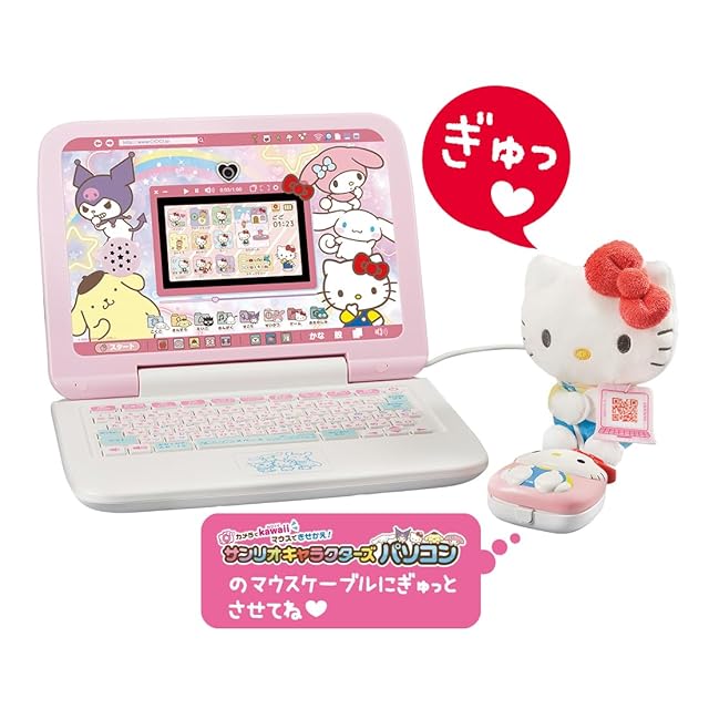 サンリオキャラクターズパソコン(別売)にぬいぐるみのキャラクターとお友だちが登場!連動して遊べるぎゅっとふれんず。ケーブルにくっつけて一緒にパソコンで遊ぼう。