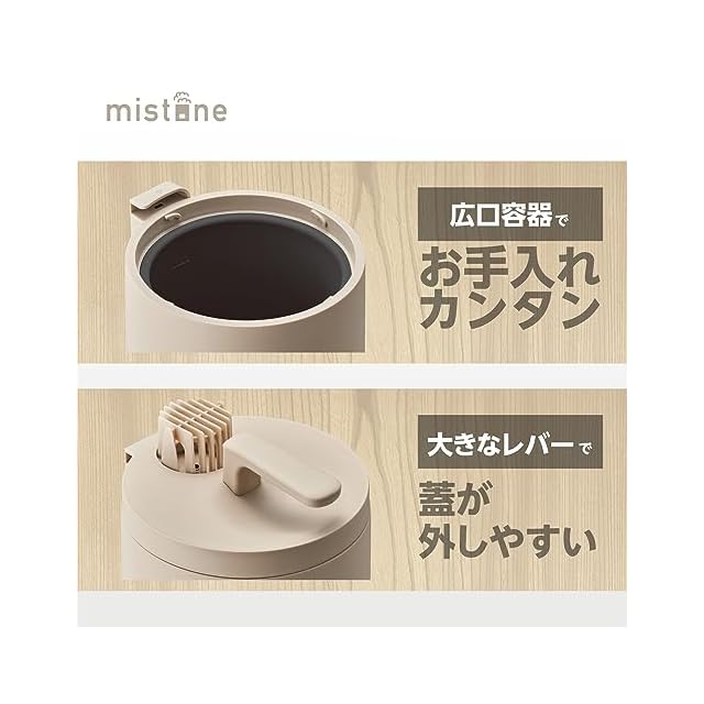 広口容器でお手入れカンタン、清潔な蒸気のスチーム式です。洗浄モード搭載。クエン酸を入れてボタンを押すだけのカンタンお手入れ。