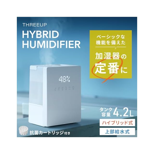 スリーアップ ハイブリッド式加湿 節電 省エネ 静音 11畳 上部給水 多機能 湿度コントロール 抗菌カートリッジ付 最大加湿量420ml/h 4.2L ホワイト HB-AZ0625WH