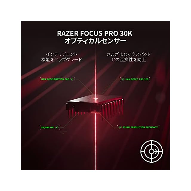 【Razer Focus Pro 30K オプティカルセンサー】前モデルのセンサーより正確なトラッキング/進化したAI機能/ガラス表面にも対応と、究極までに洗礼されたセンサーとなっており、より高い精度でのマウス操作が可能になっています。