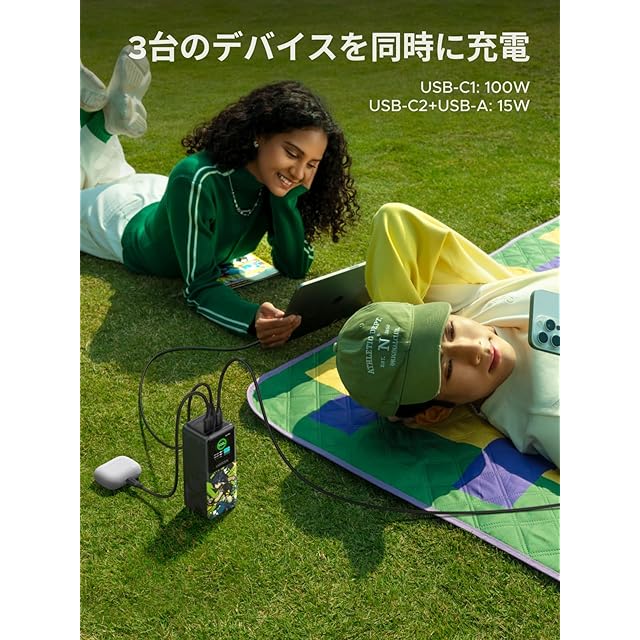 【100W Max 高出力・20000mAh大容量・USB-C PD対応で急速充電可能】100W Maxのハイパワーを持つPD(パワーデリバリー)とiPhone16を4回充電できる大容量。ノートPCやスマートフォンを急速充電できるため、冒険の途中でバッテリー残量を心配する必要はありません!Type-Cを2ポート(同時充電は合計130W高出力)、USB-Aを1ポート搭載しており、複数台の同時充電にも対応しています。
