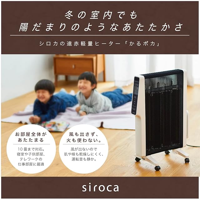 シロカ 遠赤軽量ヒーター かるポカ SN-M351(K) [節電モード新搭載/コード長50センチ増加/軽量4.8kg/乾燥しにくい/最大10畳対応/遠赤外線/タイマー設定可/] ブラック(2022年モデル)