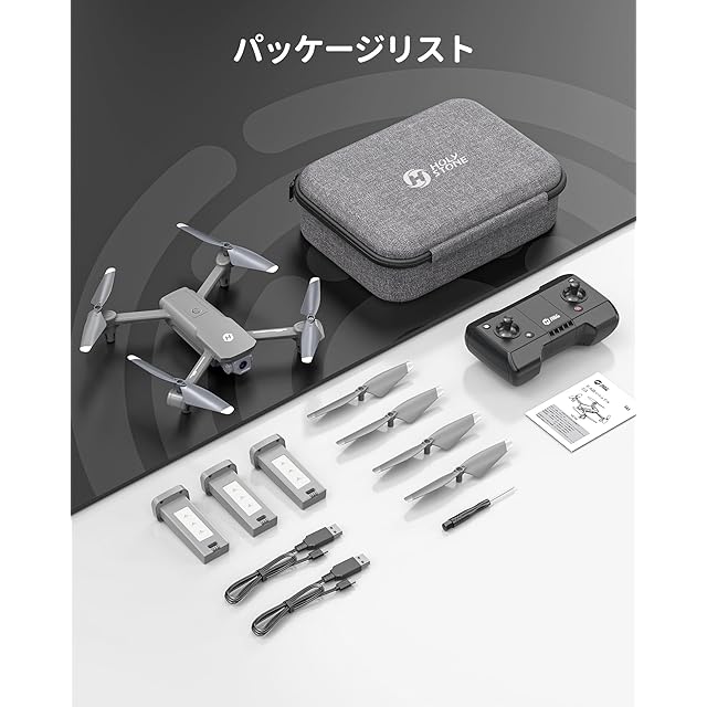 【パッケージ内容】機体*1、送信機*1、バッテリー*3、充電ケーブル*2、予備プロペラ*4、ドライバー*1、日本語説明書*1