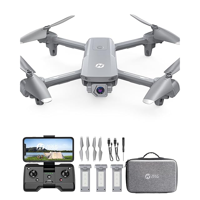 Holy Stone ドローン カメラ付き 100g未満 GPS搭載 申請不要 屋外 小型 1080Pカメラ バッテリー3個 42分飛行時間 クリスマスプレゼント 自動帰還 フォローミーモード ウェイポイントモード 誕生日ギフト HS155 (グレー)